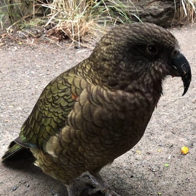 A very mischievous bird, this is the parrot which is known to damage parked cars (and any other property that has been left out in their home territory of the South Island) with their very strong beaks.